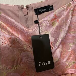 FATE NWT Pink Gold Metallic Sweetheart Neck Pencil Dress Women’s Size Small