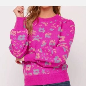 FATE Pink Puff Sleeve leopard sweater. Size medium NWT