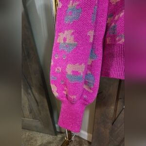 FATE Pink Puff Sleeve leopard sweater. Size medium NWT