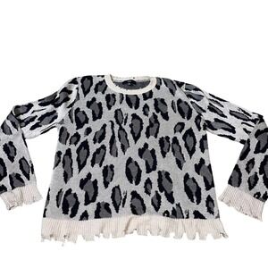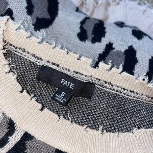 FATE WILD THOUGHTS SWEATER Distressed Taupe Leopard raw hem top boxy SZ SM