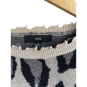 FATE Wool Blend Distressed Pullover Sweater Size Small Crewneck Leopard Animal P