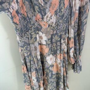 FATE boho smocked balloon sleeve muted color floral dress family photo! Size S