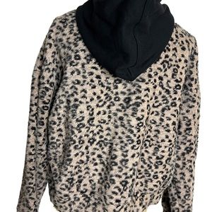 FATE leopard print, solid hood jacket. Zipper closure. Side pockets. Hand wash. New without tags.