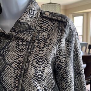 FATE Animal Print Faux Leather Moto Jacket with Zippers and Epaulets Sz Small