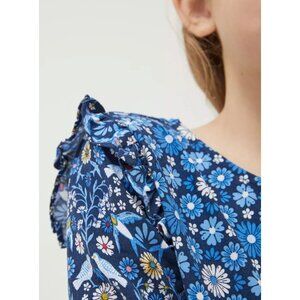 This pretty floral and bird print dress is a perfect wardrobe staple. Relaxed fit, with ruffle detailing, long sleeves, and comfy elasticated cuffs, it looks great dressed up or down. It will be their new go-to!