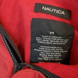 Men's NAUTICA Rain Jacket w/Concealed Hood in Red/Navy Blue. Size M