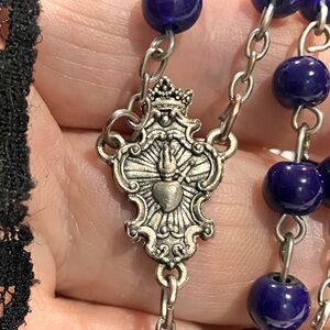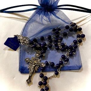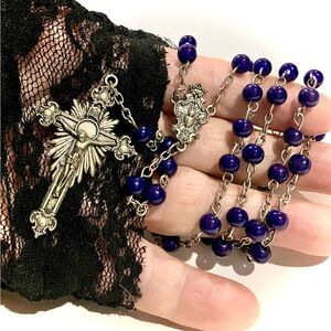 EXQUISITE MIDNIGHT BLUE ROUND GLASS BEADED ROSARY WITH