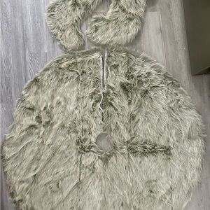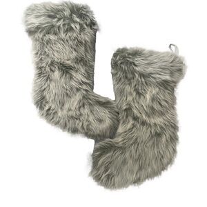 FAUX FUR TREE SKIRT Fully Lined 46” & 2 Matching Christmas Stockings Gray Soft