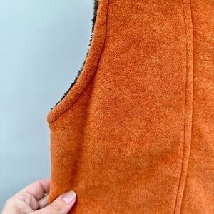 FAUX Fur reversable woman button brown-orange boho gorpcore vest MEDIUM