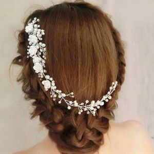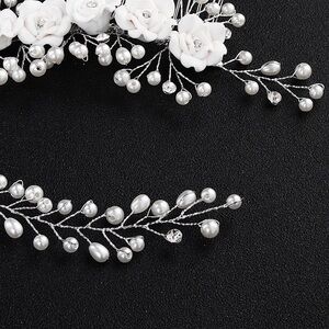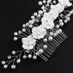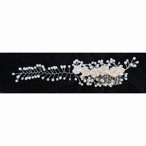 Floral hair comb. The wires are flexible. Flower is ivory. No rhinestones on vine. All pearls