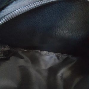 NEW FAUX LEATHER BACKPACK HAS A ZIPPER DESIGN WITH A SNAP CLOSURE. THERE IS A ZIPPER ON THE BACK OF BACKPACK. AS YOU OPEN THE BACKPACK THERE ARE 2 ZIPPERED POCKETS. INSIDE THE BACK ZIPPERED POCKET THERE IS A ZIPPER POCKET. THERE ARE 2 POCKETS ONE ON EACH SIDE OF THE BAG.