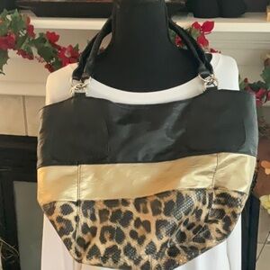 FAUX LEATHER BLACK AND GOLD BAG WITH ANIMAL PRINT