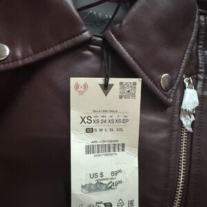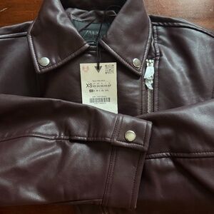 cropped biker jacket with lapel collar and long sleeves. Front zip pockets with metal zippers