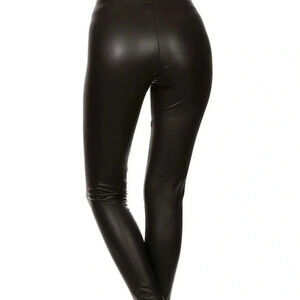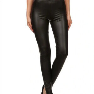 FAUX LEATHER NEW WOMENS BLACK MATTE SOFT LEGGINGS PANTS CASUAL BOTTOMS SIZE M