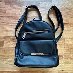 FAUX LEATHER x Women's Black Vegan Leather Backpack Purse WIth Gold Accents