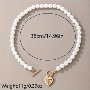 New in original packaging. Delicate golden locket says "I Love You" at the toggle closure of this pretty string of large faux pearls. MSRP $15.69 USD
