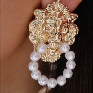 FAUX Pearl Tiger Head Fashion Earrings. NWT
