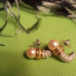 Faux pearl earrings. Used. Very good quality earrings. I don’t know the brand. No tags available.