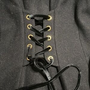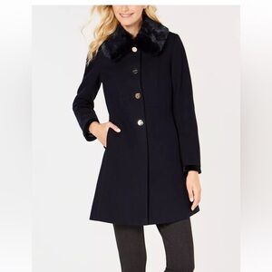 Soft, velvet corset styling and a gorgeous faux-fur collar enhances the allure of this chic coat from Laundry by Shelli Segal.