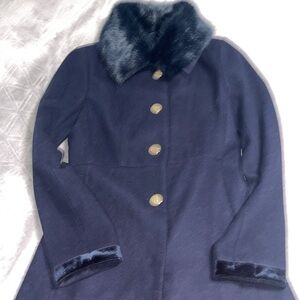 • Shell: wool/ polyester; lining: polyester; faux fur: modacrylic; velvet trim: polyester/spandex