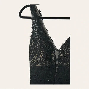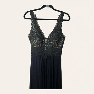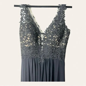 FAVIANA FORMAL MAXI DRESS THICK STRAPS BEADING FLOW DOWN STRAIGHT MESH SIZE 6