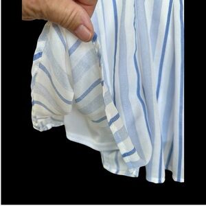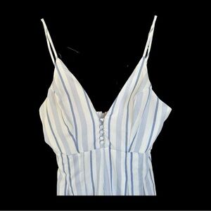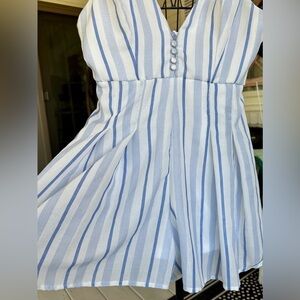 FAVLUX, BLUE & WHITE STRIPE ROMPER. ADJUSTABLE SHOULDER STRAPS, SIZE M