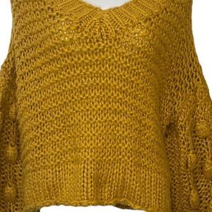-Features: V-neck, Drop shoulders, Bobble knit, Oversized fit, Cottage-core, Cropped silhouette