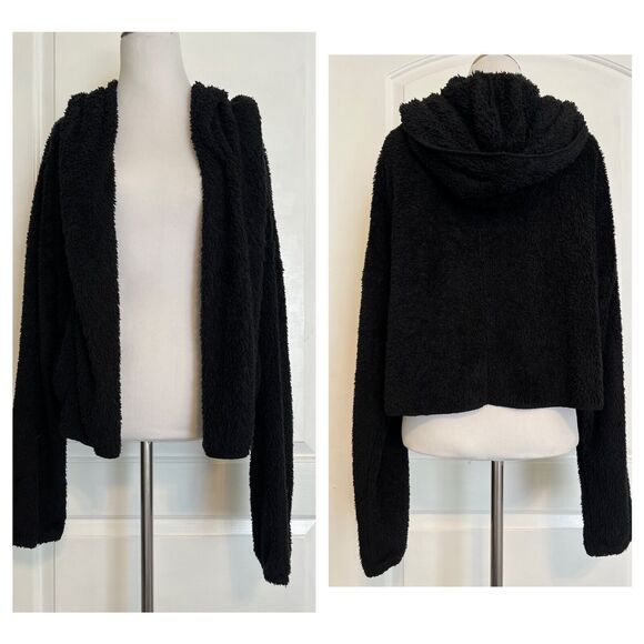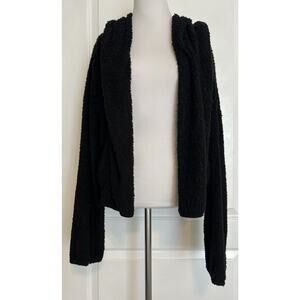FAVLUX BFluffy Black Sherpa Teddy Open Front Jacket Coat Fall Spring Soft Cozy L