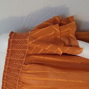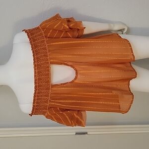 FAVLUX Off Shoulder Cropped Ruffle Keyhole Sheer Swing Copper Metallic Blouse