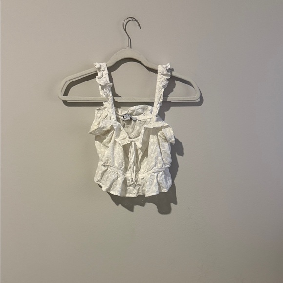 Elegant white crop top with ruffled straps. Perfect for casual outings.
