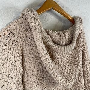 FAVLUX Women's Popcorn Hoodie Tan Oversized Sweater S