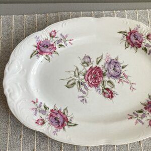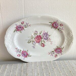 FAVOLINA Poland SERVING PLATTER Roses 13” Oval Gold Trim Cottagecore Farmhouse chic
