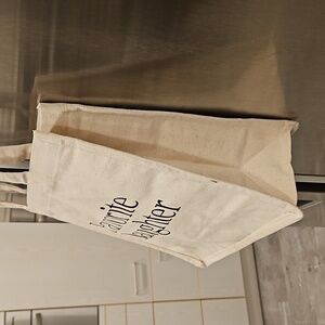 This reusable lightweight canvas tote bag is perfect for a beach day, light grocery trip, day bag, or picnic in the park. The two internal side pockets are large enough to hold two large water or wine bottles.