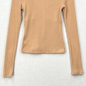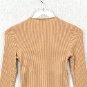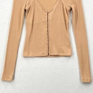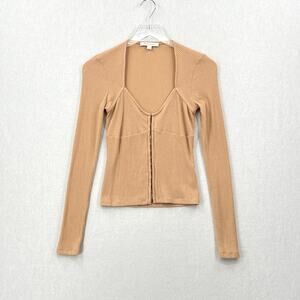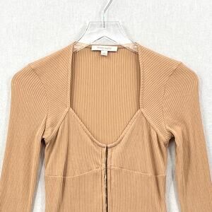 FAVORITE DAUGHTER Kate Ribbed Bustier Knit Top Womens S Tan V Neck Long Sleeve