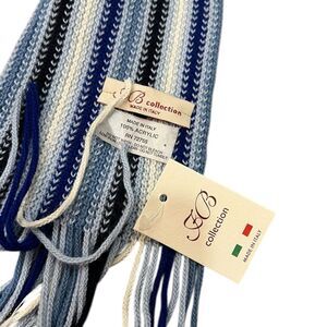 FB Collection Blue Striped Fringe Italian Made Scarf