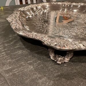 Mid Century FB ROGERS 16" Silverplate Round Tray, Pattern #7734 - Hollowware Footed Serving Tray, Circa 1950's.