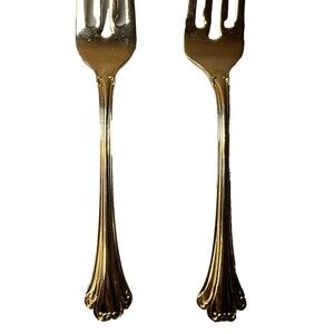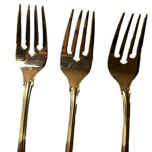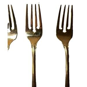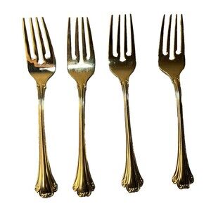Description: Set of 4 Salad Forks Golden Plated Electroplate American Chipendale