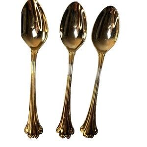 Description: Golden Plated Electroplate American Chipendale Set of 5 Small Spoons