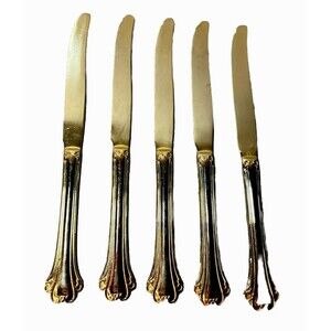 Description: Golden Plated Electroplate American Chipendale Set of 5 Butter Cutters