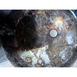Tarnished silver finish with visible discoloration and age-related wear.
