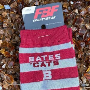 FBF Sportswear Bates College Bobcat Maroon & Grey Socks. Large. New with Tag (NWT). Ships from a smoke and pet free home.