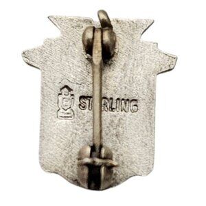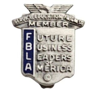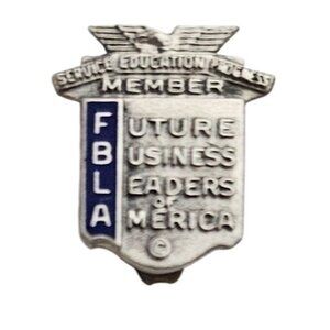 This Sterling FBLA Pin is a great piece to acquire, especially for past Service Education Progress Members. FBLA is a non-profit organization that inspires and prepares individuals for career and leadership experiences. This pin is crafted from sterling silver with an embossed enamel blue component at the front with FBLA initials. The top has an eagle design labeled SERVICE EDUCATION PROGRESS MEMBER below. It has a pin mechanism that functions properly, and conveniently secures the straight pin on the back to provide a firm fit to any fabric surface. A wonderful addition to your vintage collection.