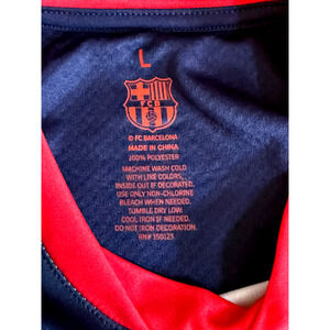 FC Barcelona Red and Navy Adult Gameday SSleeve T-Shirt Size Large New With Tags is Unisex size. Men's Large is Women's XLarge.