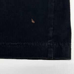 Has a small brown spot on the bottom - probably from the screen printing process. No other flaws noticed. Missing tag but I feel it measures similar to a Small. Check measurements to ensure fit. See photos.