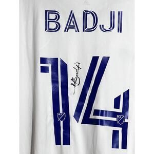 You are bidding on an FC Cincinnati jersey, #14, Dominique Badji, signed. Adidas, white and blue. Size large, new.
