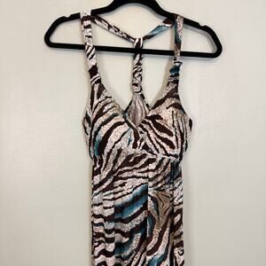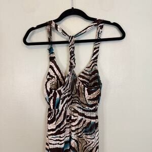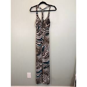 FCNY Maxi Dress Women S Brown Animal Print Sleeveless Empire Sundress Summer NWT
