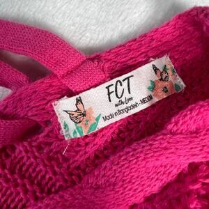 FCT With Love Hot Pink V-Neck Sweater with Lace-Up Back Size Medium
