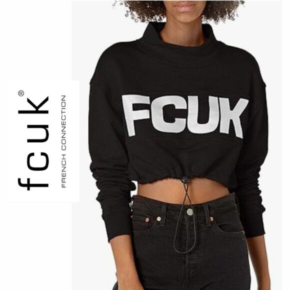 Description: Pre-owned and still in good condition. There is a nick on the "U" of the logo, very small. Drawstring. Long Sleeve. High Neck Top. Big FCUK Logo at front.
