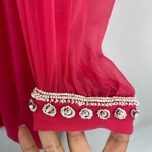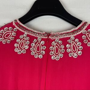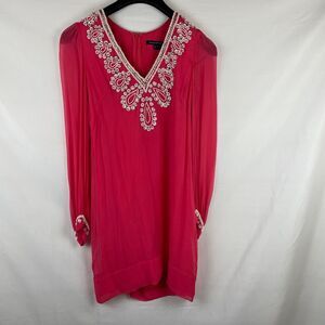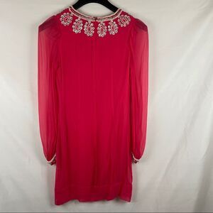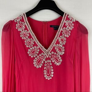 In great condition. Size 2. Silk long sleeve dress. Beaded detail around neckline. Main body lined.