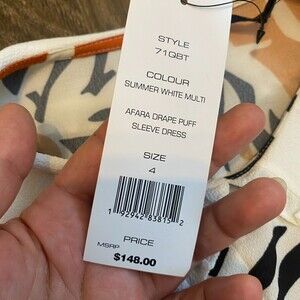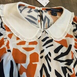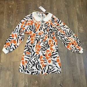 FCUK Size 4 Afra Collared Puff Sleeve Mini Dress Orange Black Animal Print NWT